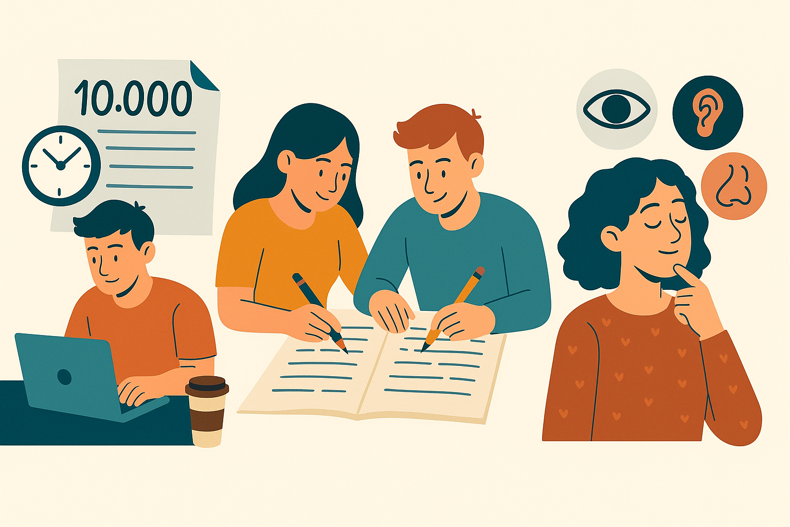 10. Narrativa sensorial: Crea cuentos focalizados en los cinco sentidos, donde la historia surge de descripciones olfativas, auditivas o táctiles más que de diálogos o acción. Este enfoque desarrolla la sensibilidad estética y enseña a implicar al lector desde lo visceral, haciendo la lectura más inmersiva.