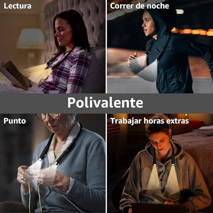 No hay que perder de vista que este tipo de accesorios también pueden aportar valor más allá de la lectura: para personas que realizan manualidades, tareas delicadas o actividades recreativas en baja iluminación, el formato tipo collar con brazos ajustables ofrece una solución práctica y adaptable.
