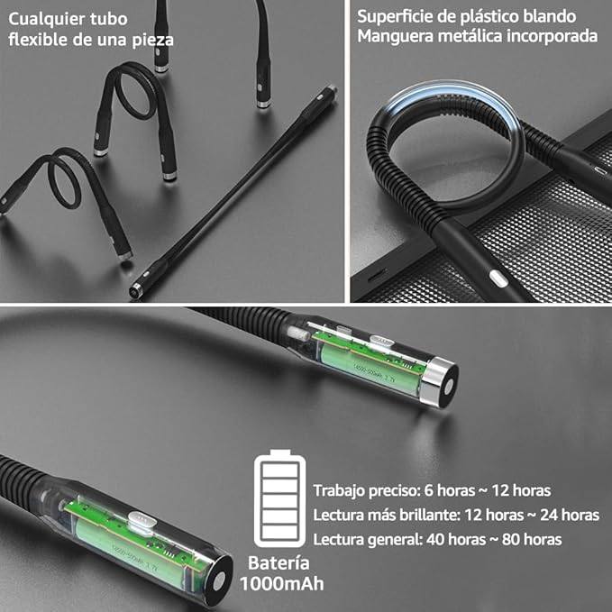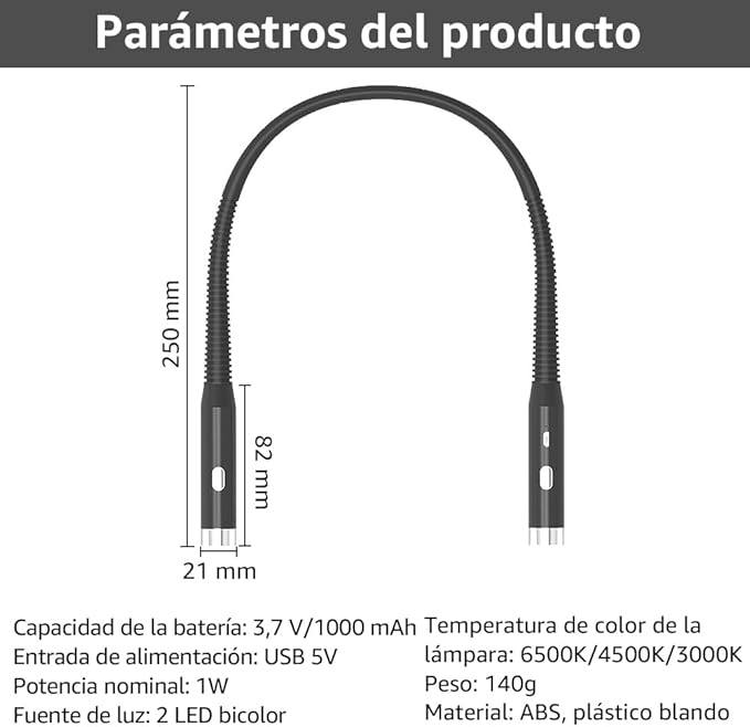 El diseño flexible tipo collar permite realizar actividades que requieren precisión o atención continua sin tener que sostener una fuente de luz. Esto la vuelve útil no solo para lectores, sino también para quienes tejen, escriben, hacen reparaciones caseras o trabajan con las manos en ambientes poco iluminados. - Prevención de fatiga visual
